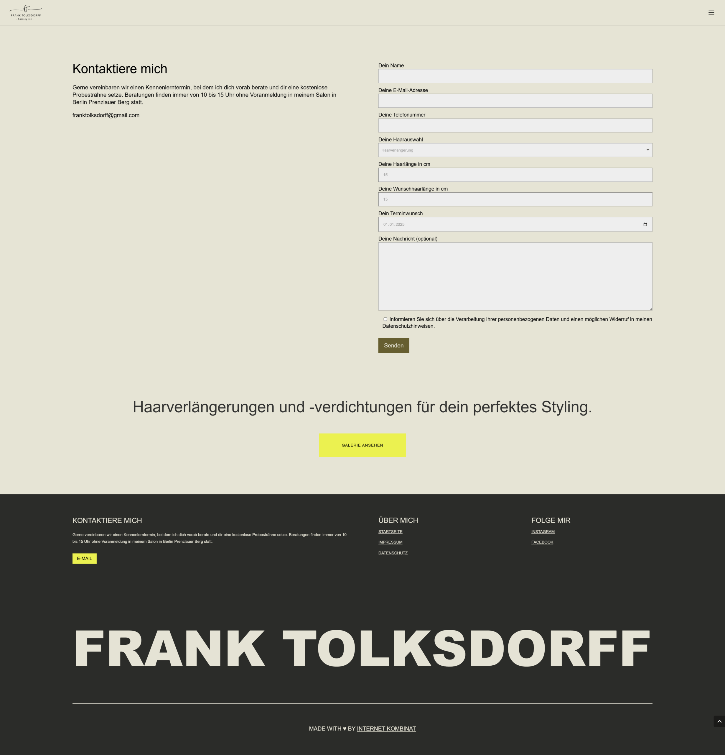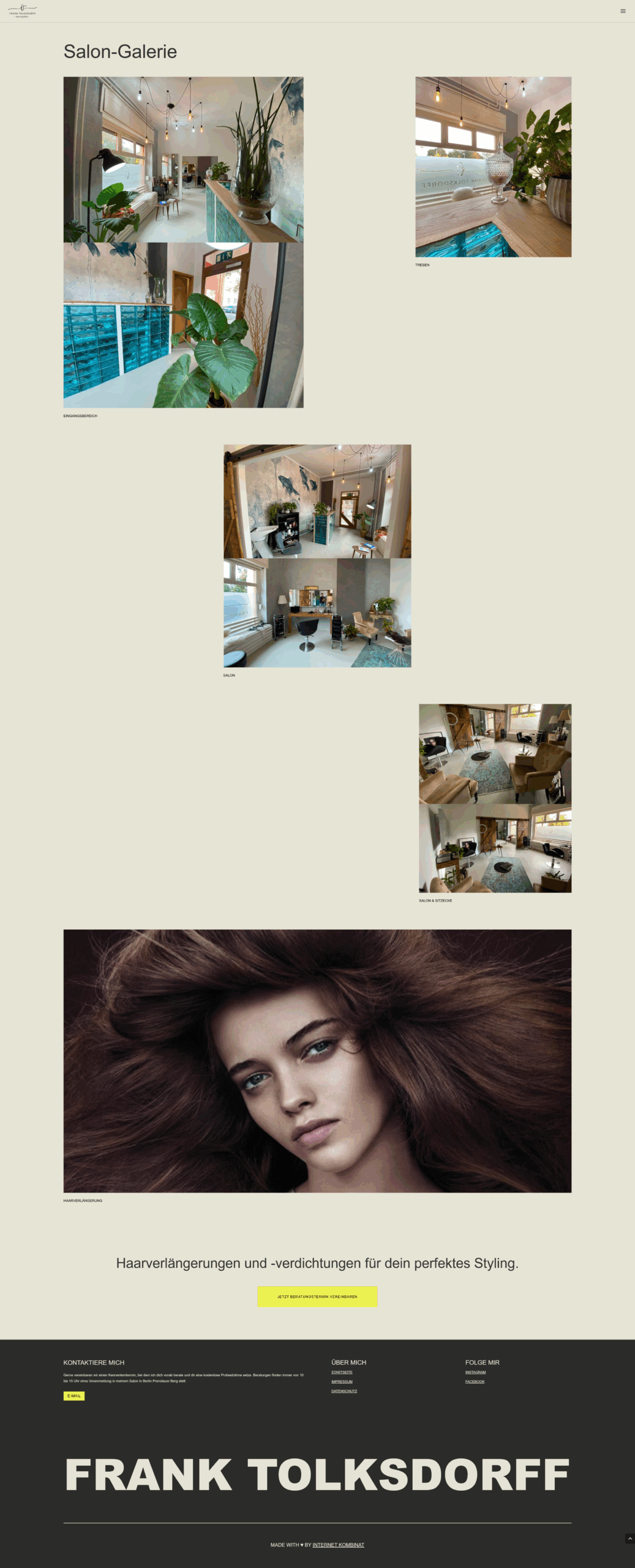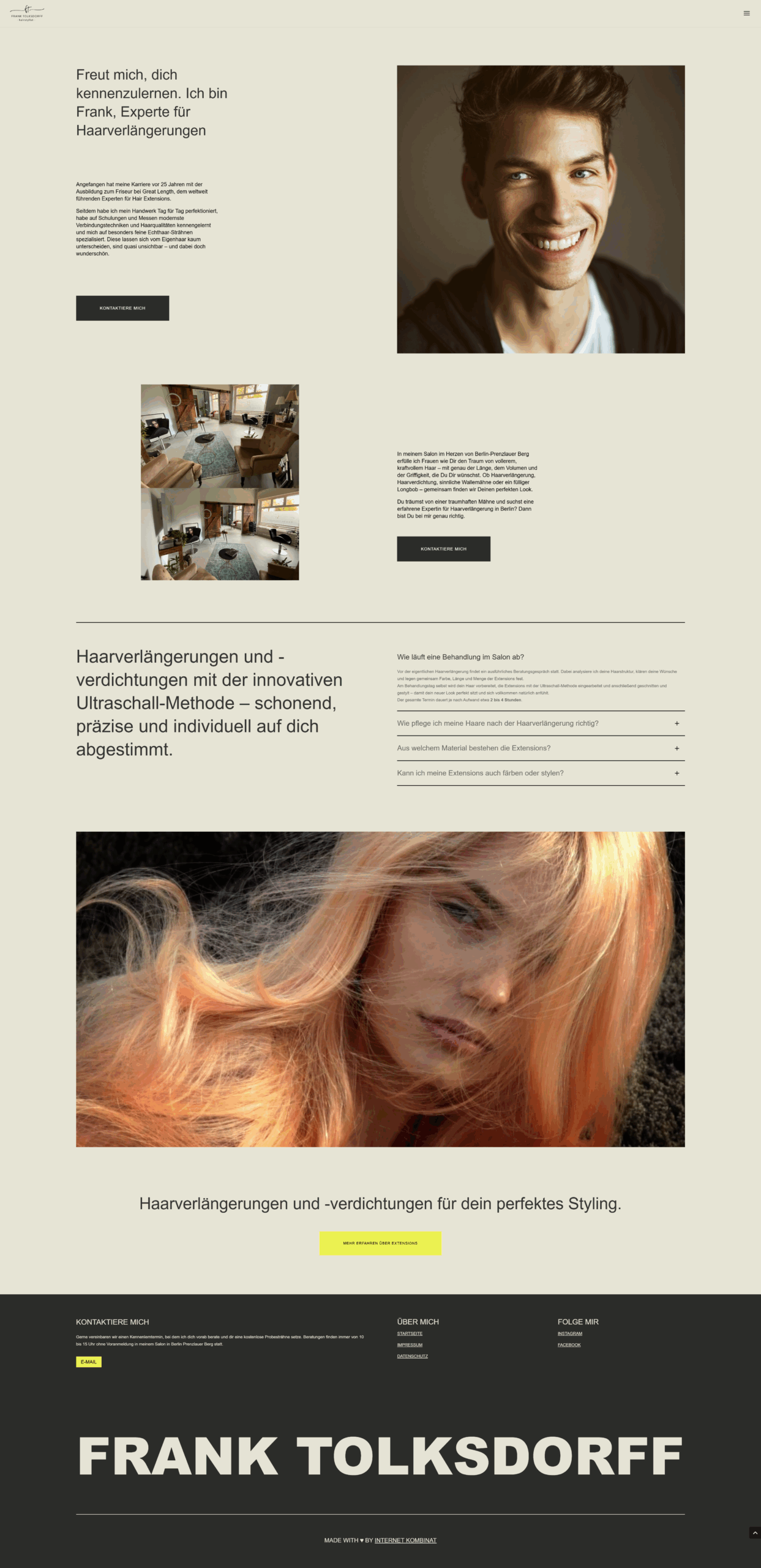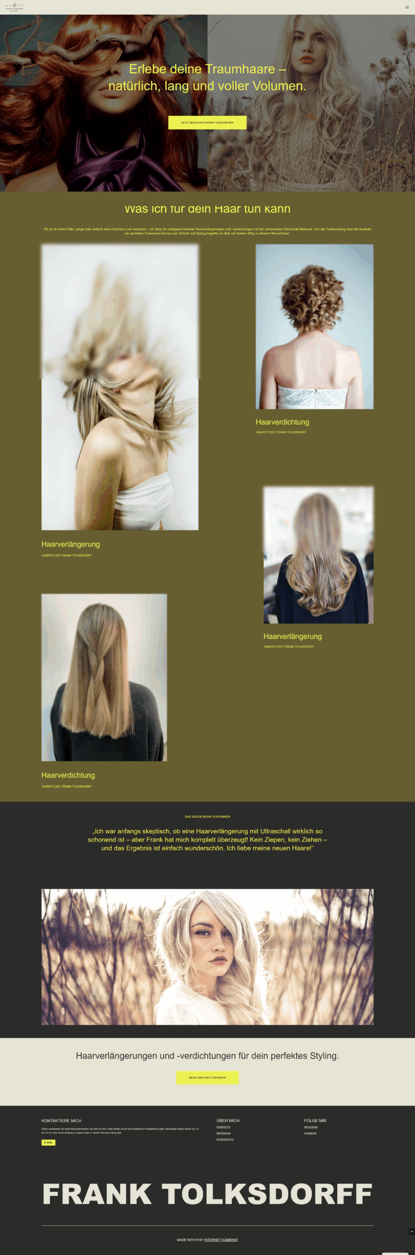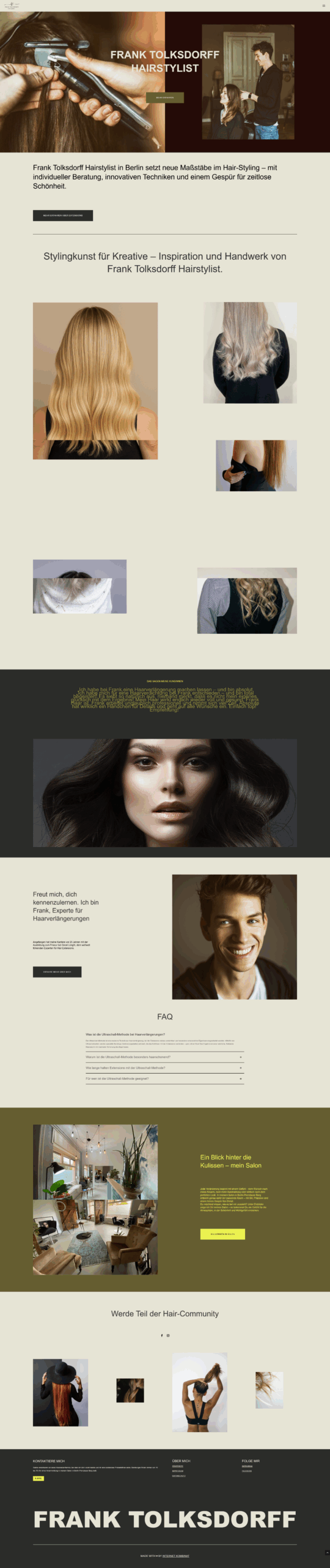 Das Konzept bestand darin, eine zeitgemäße Website zu gestalten, die das Vertrauen und die Professionalität von Frank Tolksdorff vermittelt. Die neue Website sollte seine Expertise im Bereich Haarverlängerungen und Verdichtungen hervorheben und gleichzeitig eine intuitive Benutzererfahrung bieten.